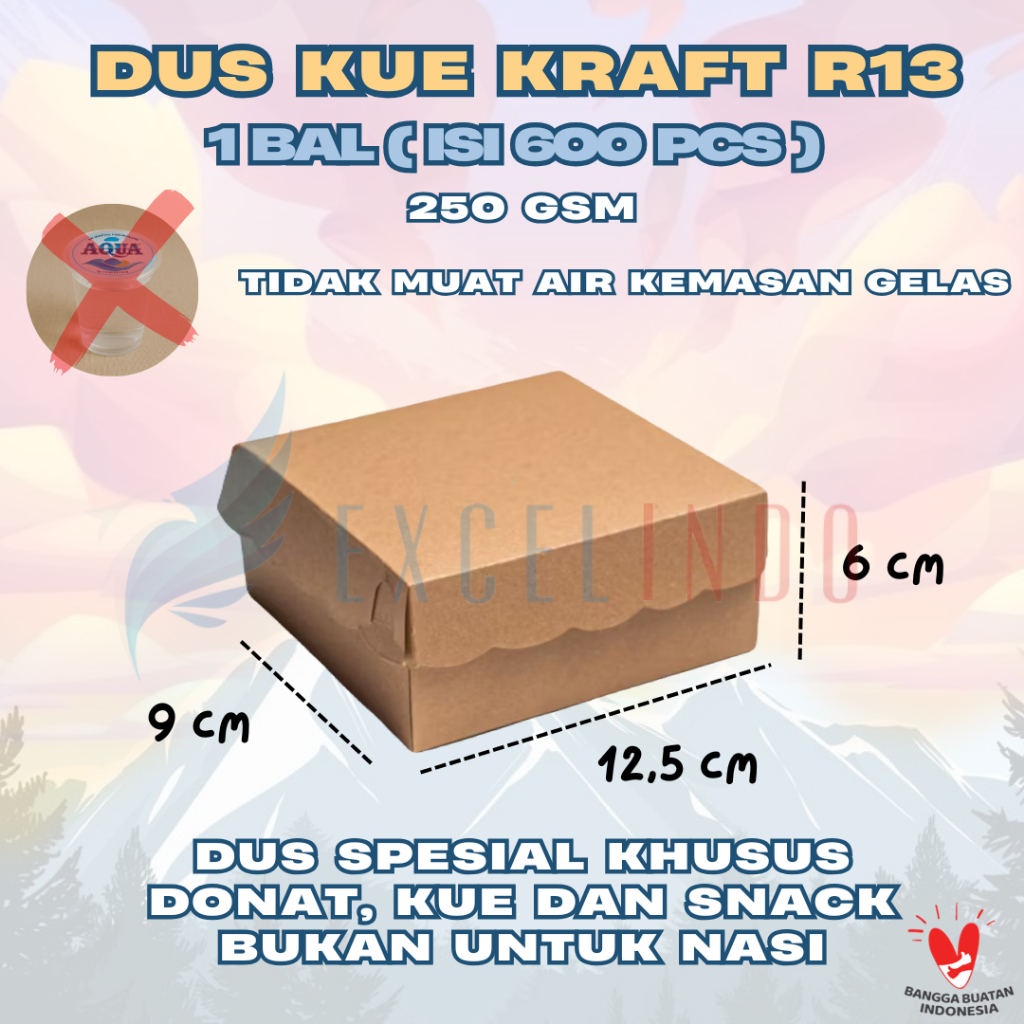 1 Bal Isi 600 pcs EXCELINDO Kotak Dus Snack R13 Kraft9 cm x 12,5 cm x 6 cm KHUSUS UNTUK SNACK
