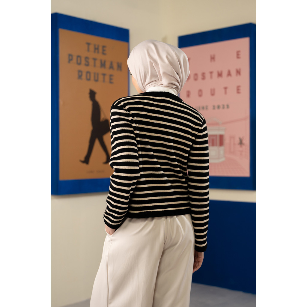 Klamby - Elodie Striped Knit Cardigan Onyx
