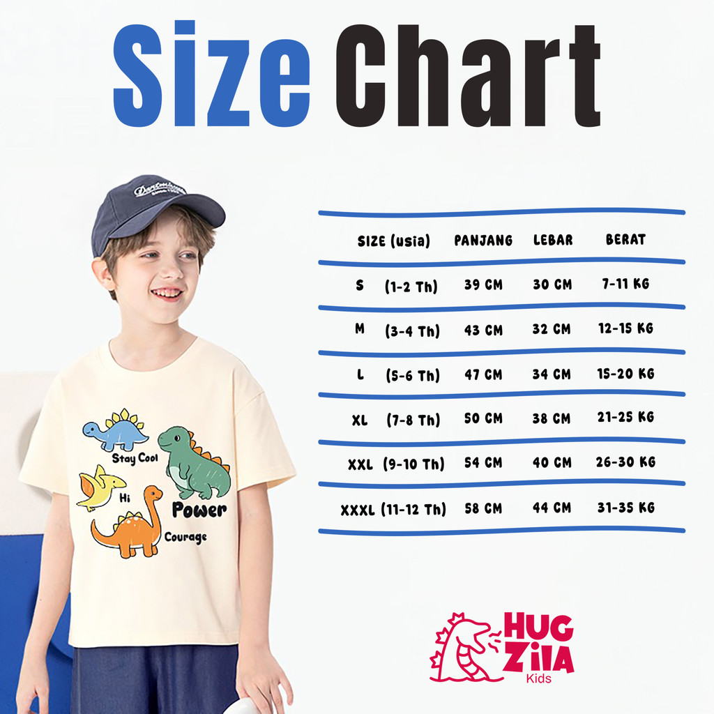 Hugzila - Kaos Anak Premium 1-12 Tahun 100 PERSEN Katun Tebal 24S Baju Anak Laki Laki Perempuan - Huga02