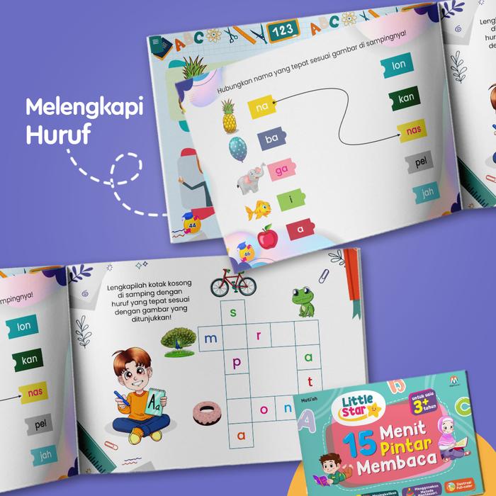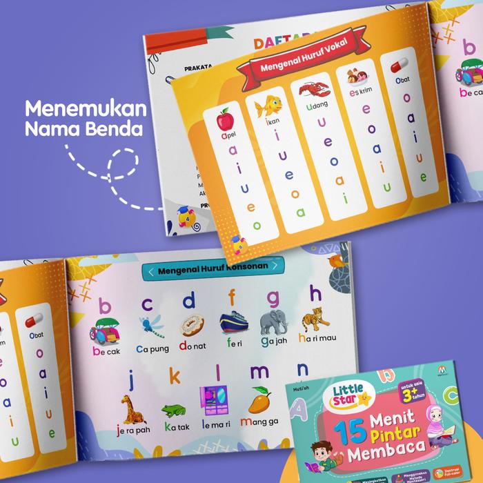 ISI 2 BUKU - BUKU BELAJAR MEMBACA ANAK - LITTLE STAR 15 MENIT PINTAR MEMBACA TANPA DIEJA METODE MONTESSORI HIJAU - PAKET