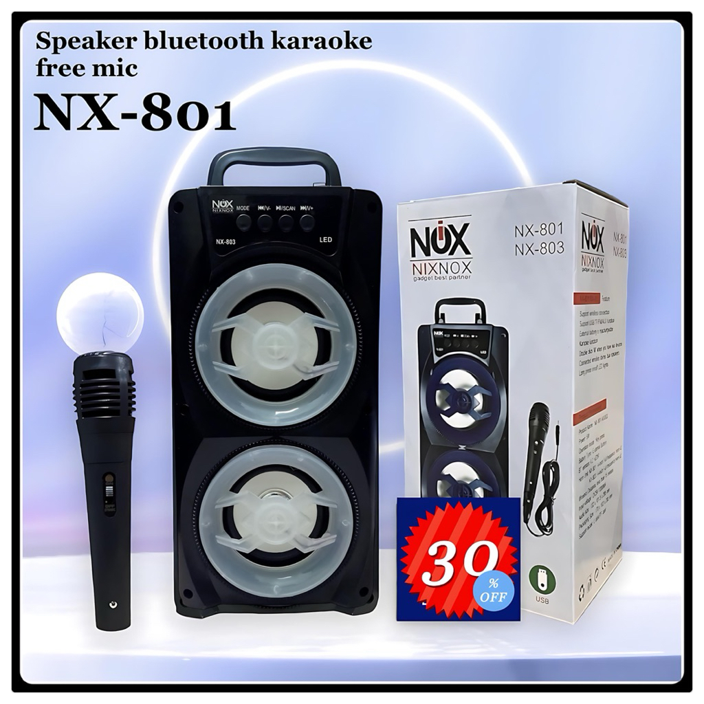 speaker bluetooth nixnox original portabel karaoke free mic PJ 801/802 speaker aktif termurah ki