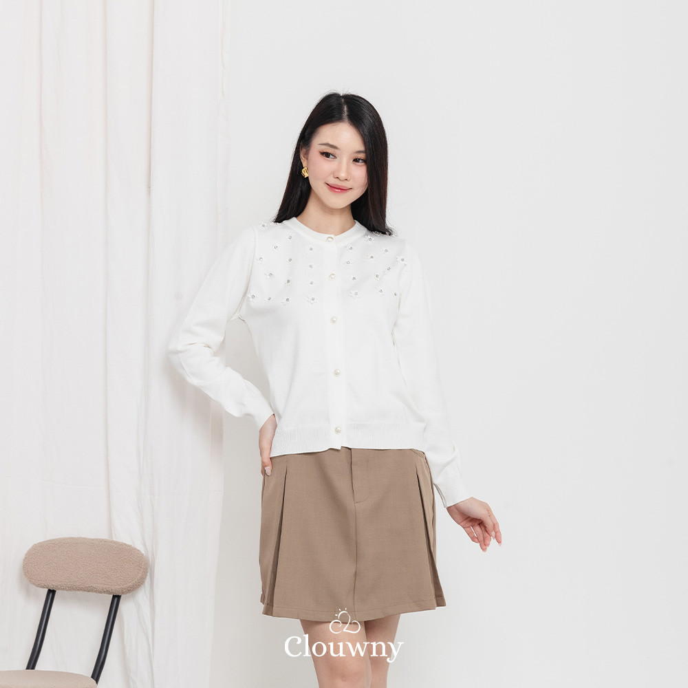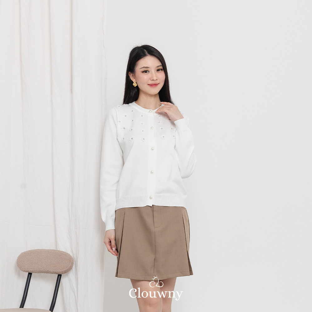 Clouwny Anya Button Knit Cardigan Atasan Lengan Panjang Wanita Classy Simple Outer Korean look