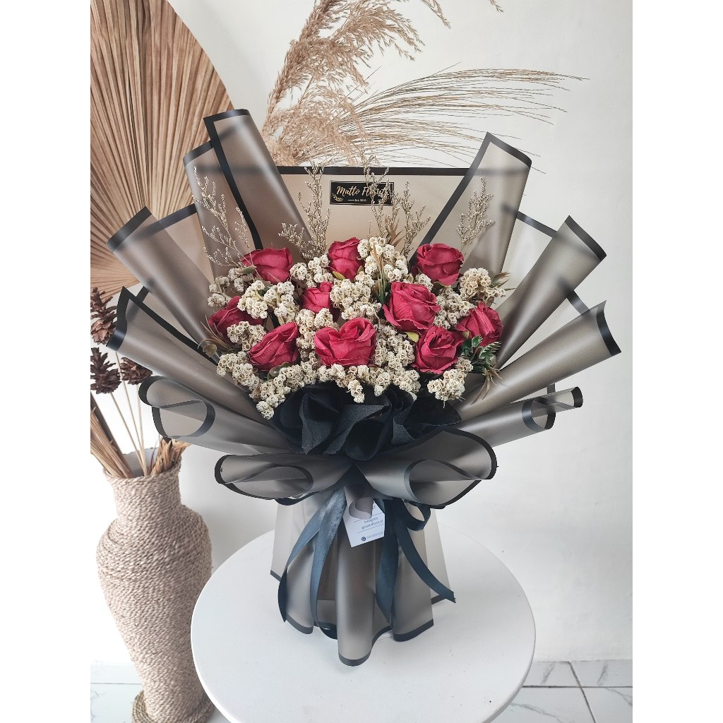 Buket Mawar Merah Premium Mix Edelweiss Jumbo Elegan dan Mewah