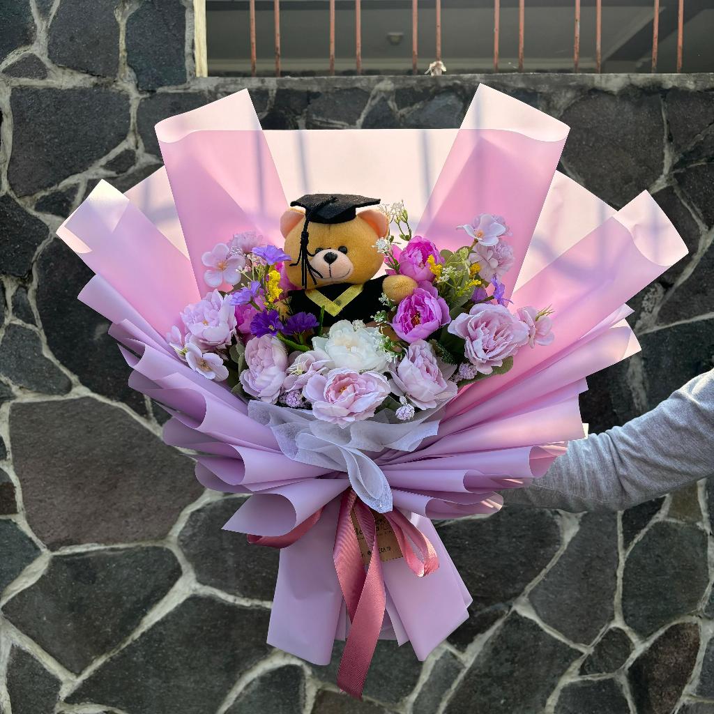 (Ready) buket size S 40cm boneka bunga palsu bucket wisuda bouquet graduation ulang tahun