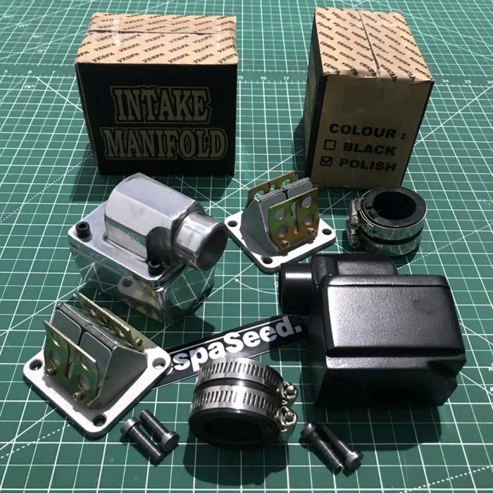 INTAKE MANIFOLD MANIPOL SUSUN VESPA KOMPLIT MEMBRAN RXZ - INTAKE HITAM