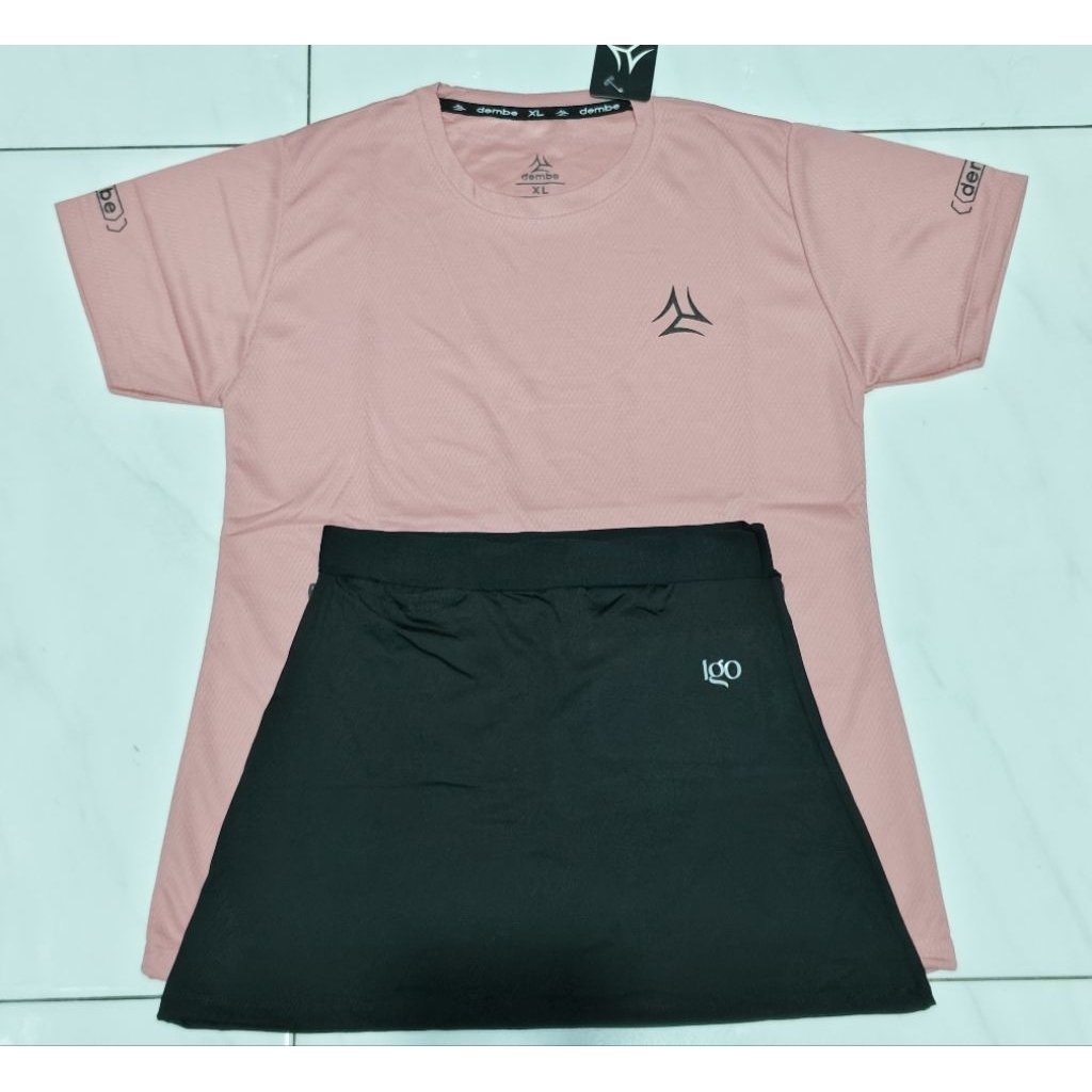 Stelan Pakaian Olahraga wanita Kaos + Rok Pendek Kualitas Premium