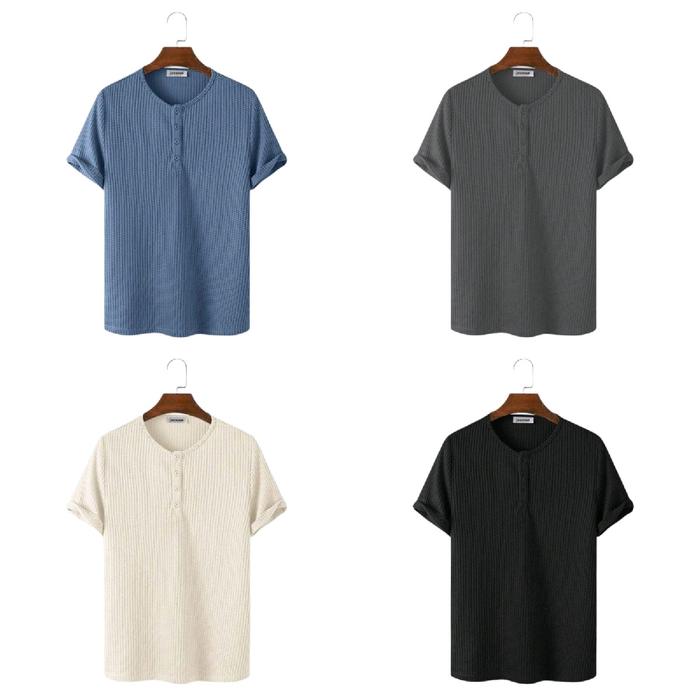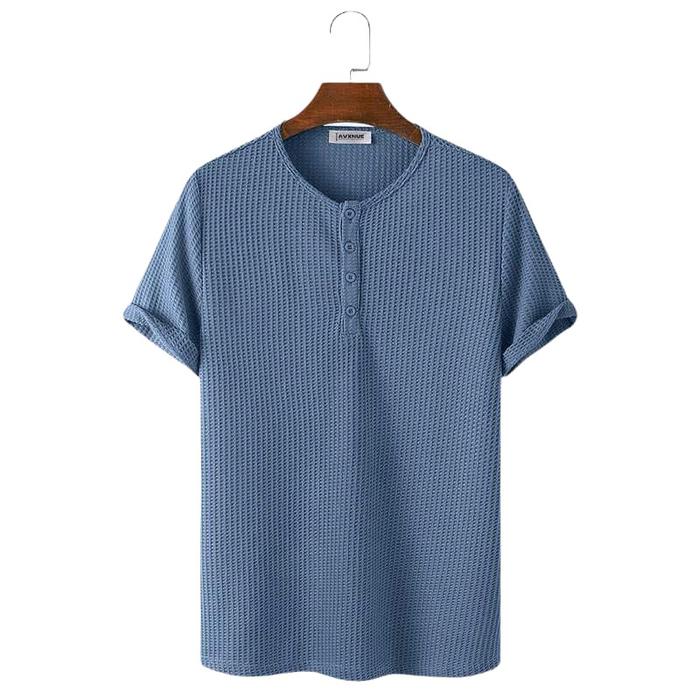 PAKET HEMAT 3 PCS KAOS HENLAY LOS PRIA BAHAN WAFLE PREMIUM LEMBUT - KANCING MAYHEM - HITAM CREM DENIM, M