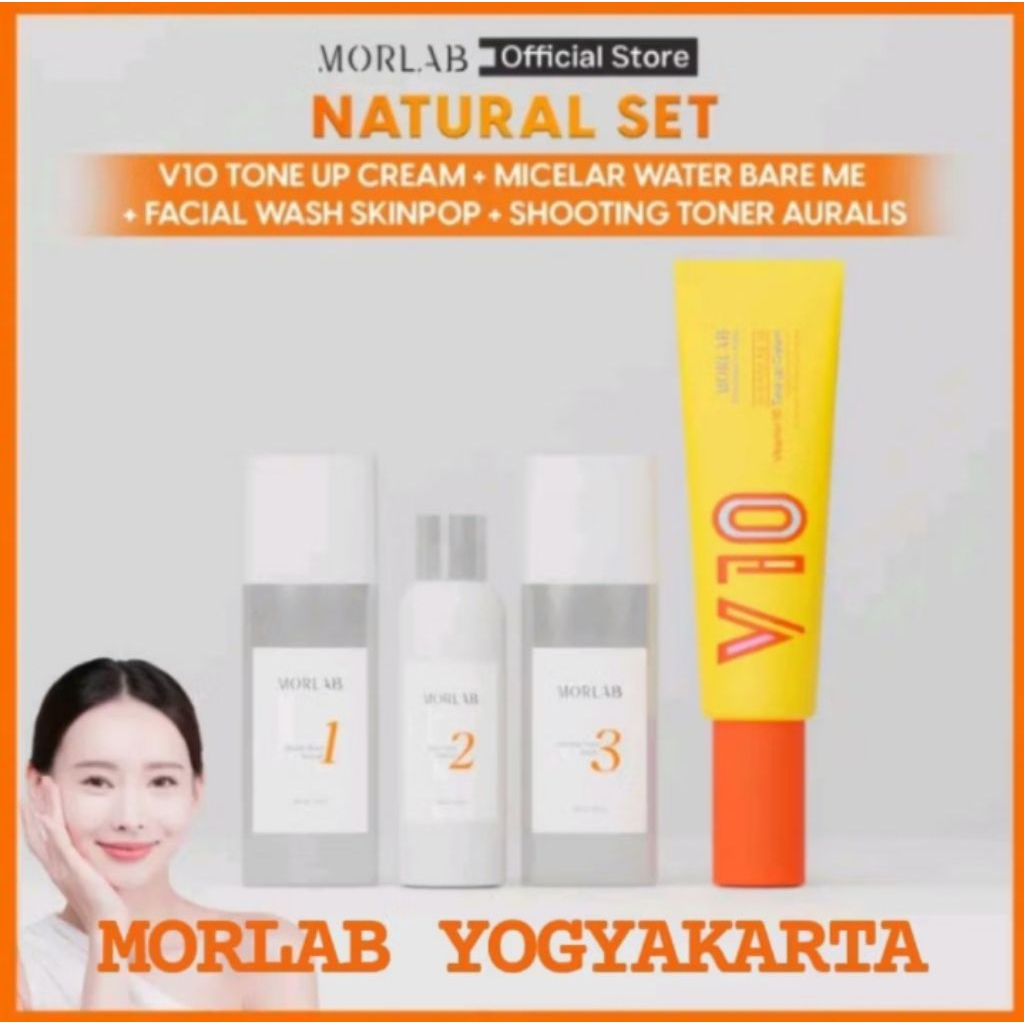 MORLAB NATURAL SET - V10 TONE UP CREAM + SKIN RESET BUNDLE - MICELAR WATER BARE ME + FACIAL WASH SKINPOP + SHOOTING TONE