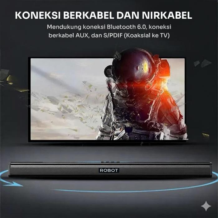 ROBOT SOUNDBAR SPEAKER TV RB590 WIRELESS 6.0 HOME THEATER DUAL CONNECTION ULTRA-COMPACT DESIGN GARANSI 1 TAHUN SPEAKER BLUETOOTH BASS 10W 52MM DRIVER BASS BOMBASTIS KUALITAS TINGGI