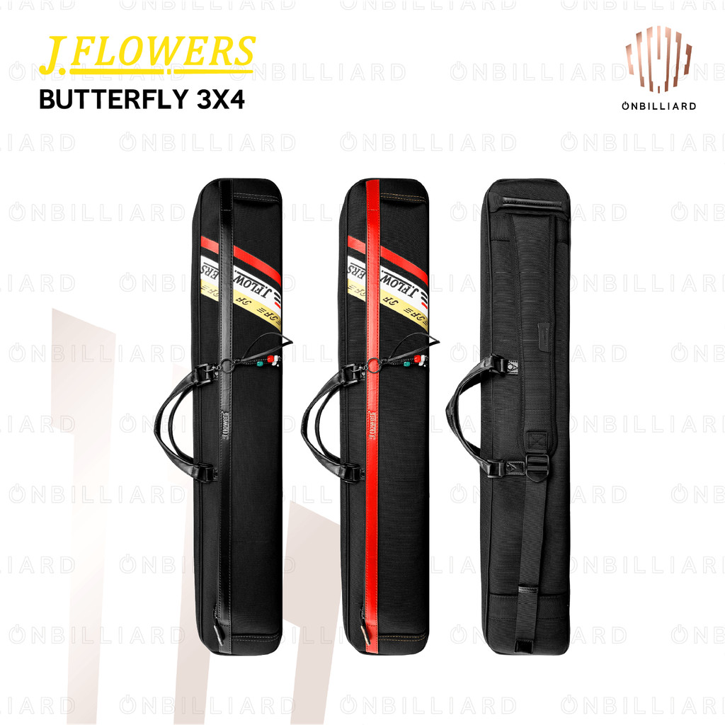 JFLOWERS BUTTERFLY 3x4 Tas Stick Billiard JF-0005 Cue Soft Case JFS JF Butterfly