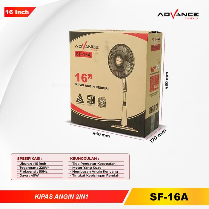 ADVANCE KIPAS ANGIN BERDIRI STAND FAN 16" ADVANCE SF-16A FAN KIPAS ANGIN STAND 16INCH PRODUKSI ANGIN KENCANG GARANSI RESMI 1 TAHUN MESIN - 16INCH