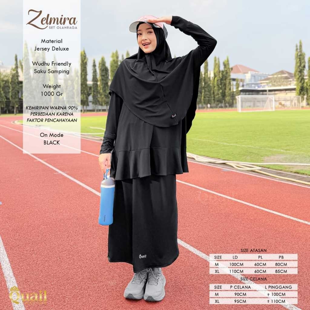 Zelmira One Set Olahraga Muslimah Setelan Baju Sport Original Quail Hijab Emran