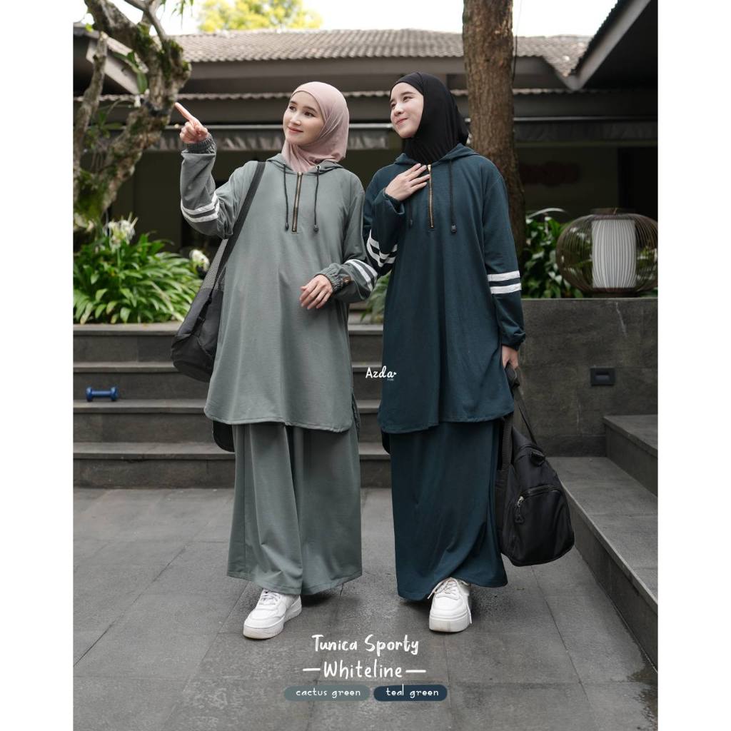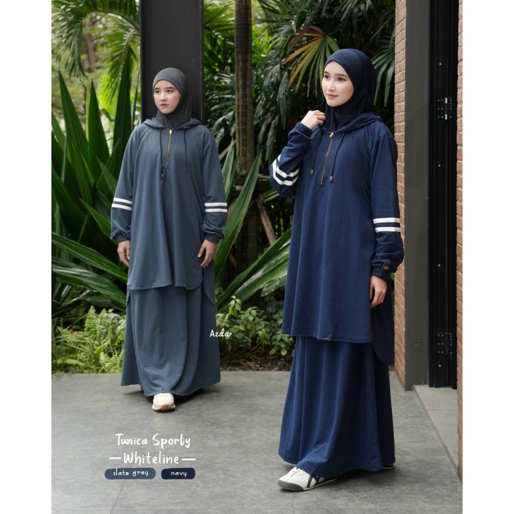 Tunica Modest Sporty Whiteline by Azda | Setelan Olahraga Wanita | One set tunik Rok Olahraga Muslimah