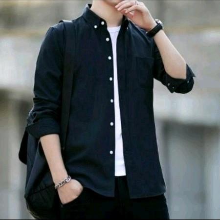 KEMEJA LOS PRIA LENGAN PANJANG KATUN PREMIUM BAJU KERJA KAMPUS KONDANGAN KANTOR FORMAL CASUAL SANTAI NYAMAN SIMPLE NAVY PUTIH HITAM SLIMFIT KERAH KANCING VARIASI HEM - HITAM KANCING PUTIH, M