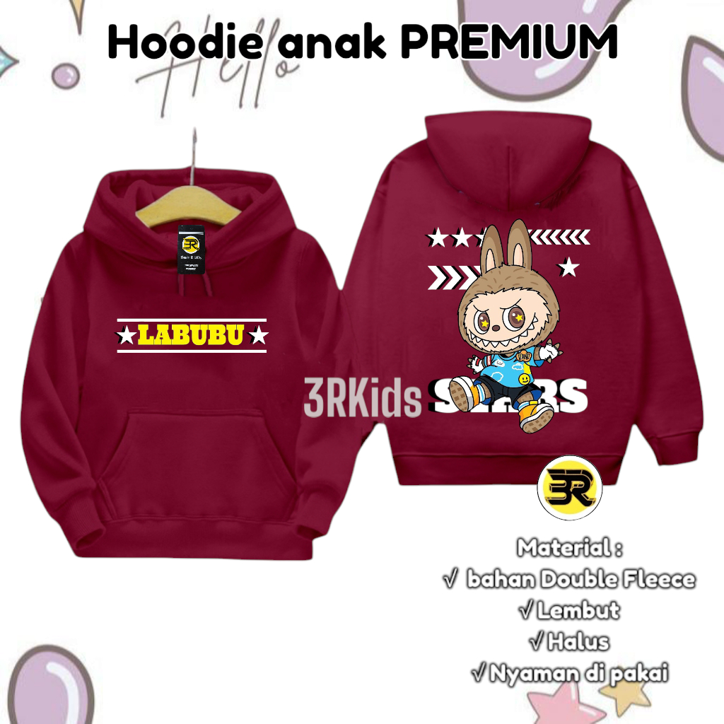 Jaket Anak Perempuan Laki Laki 2-12 Tahun /Hoodie Anak Labubu Terbaru/Jaket Sweater Hoodie Labubu Anak