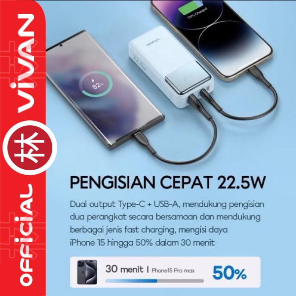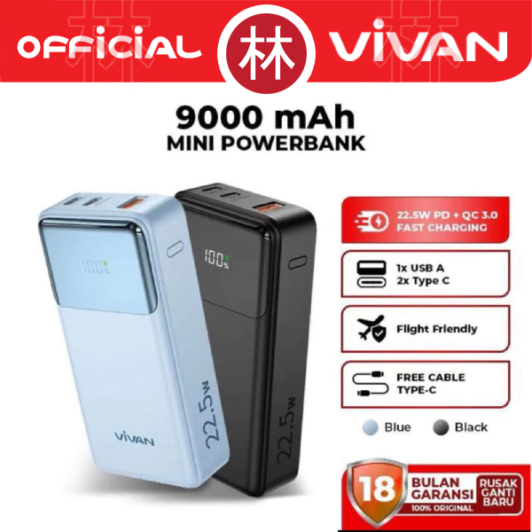 Powerbank Vivan VPB-C10 Mini 9000 mAh 22.5W Fast Charging 3 Output 9 Safety Protection