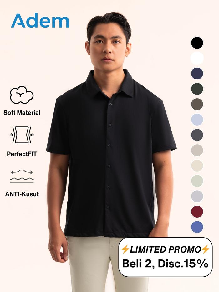 KLOTIFAI - ADEM SS BLACK - KEMEJA LENGAN PENDEK PRIA | LEMBUT, NYAMAN, ANTI-KUSUT - LOS/NON SAKU, S