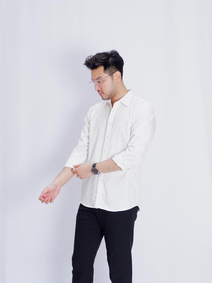 TRYST - HELCURT COTTON SHIRT | KEMEJA LENGAN PANJANG | KATUN TOYOBO PREMIUM | KEMEJA PRIA SLIMFIT LOS | BAJU KERJA FORMAL | ATASAN COWOK DEWASA | CASUAL BASIC LEMBUT - BLACK, S