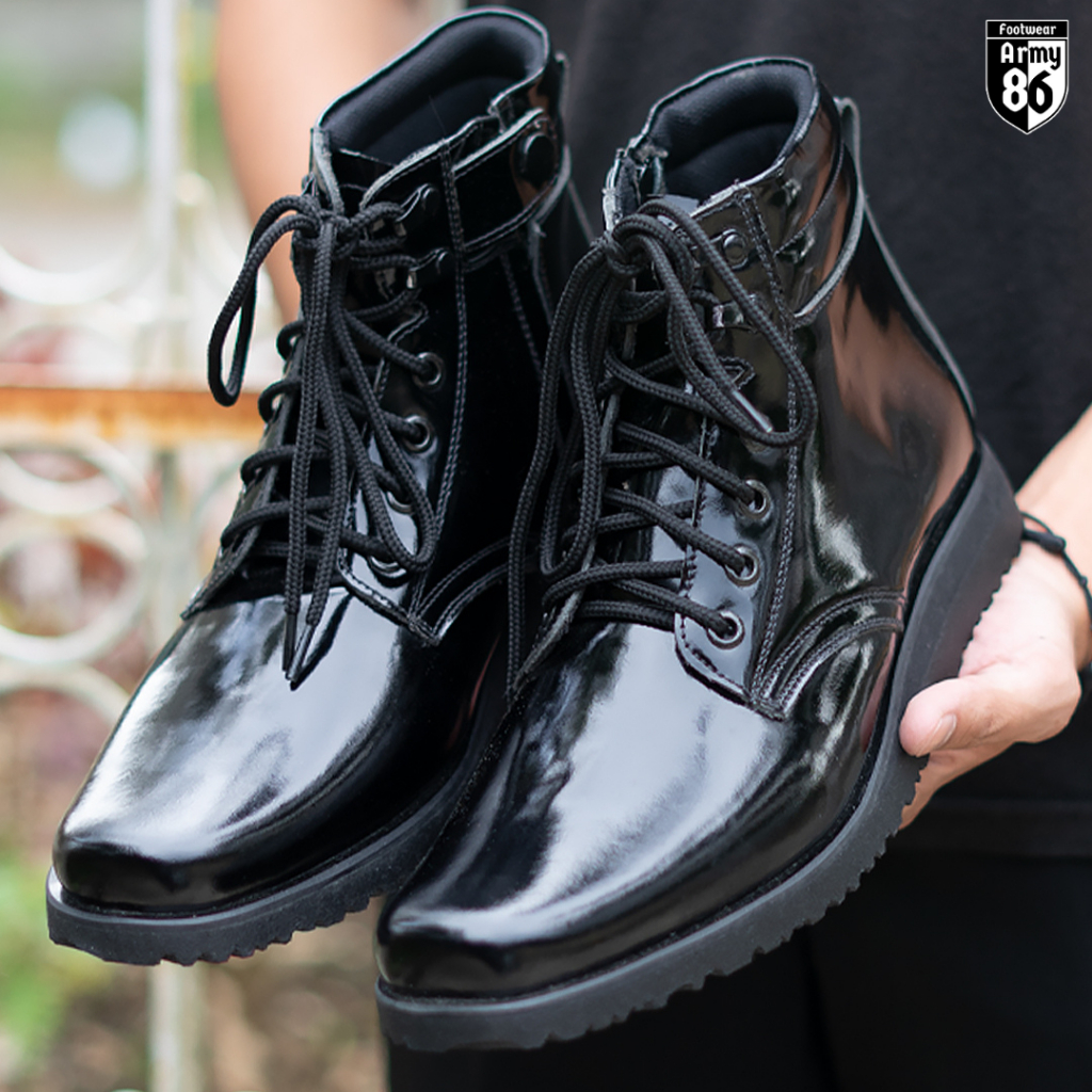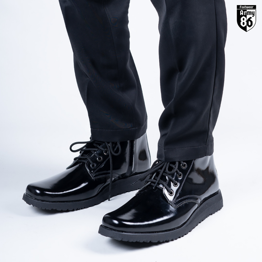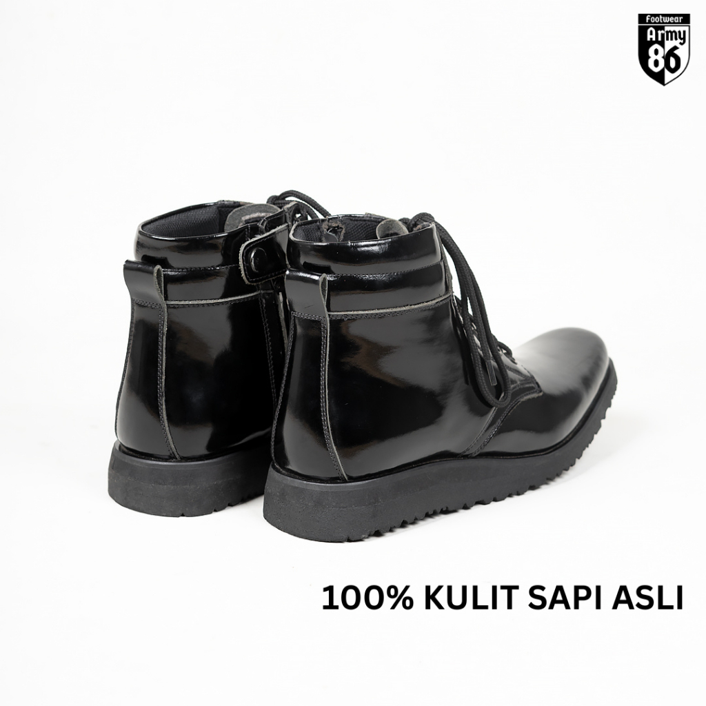 Army86 Sepatu PDH TNI POLRI Pria Satpam Kullit asli Tali hidup Model WAVE