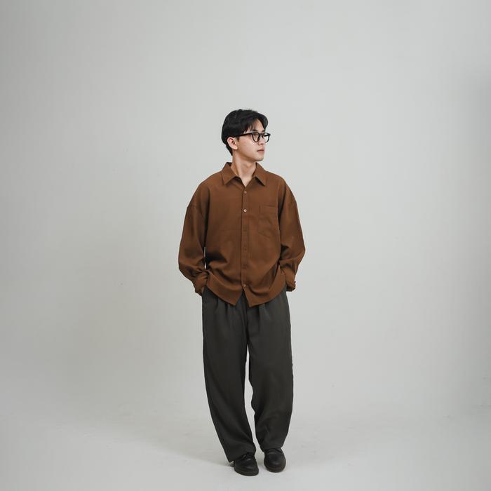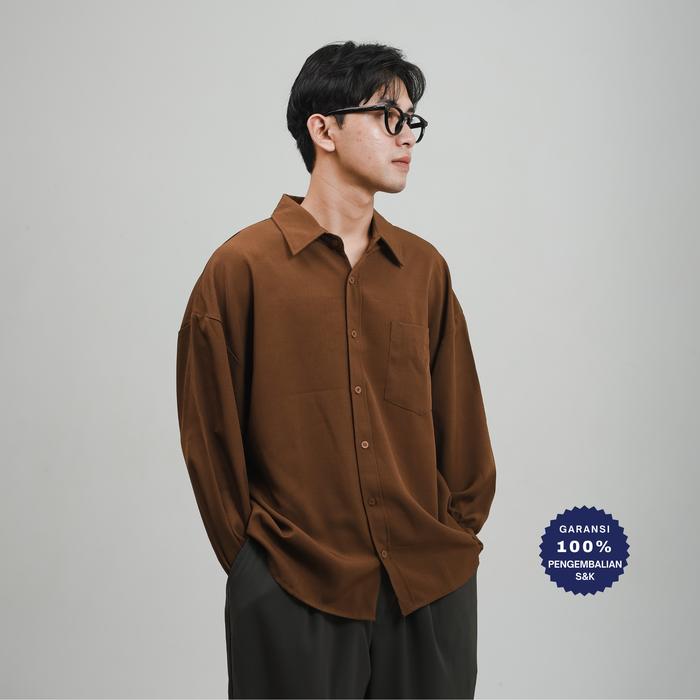ROOMFAZZA KEMEJA LENGAN PANJANG PRIA OVERSIZED KASUAL KERJA ATASAN CASUAL FORMAL - COKLAT, S