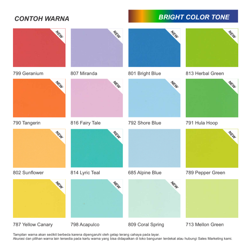 Cream (040), Off White (046), Chiffon (649), Smoke Grey (665), White(6000), Mellon Green (713), Banana (695), Palmyra (803), Broken White (033), Super Black (w678)