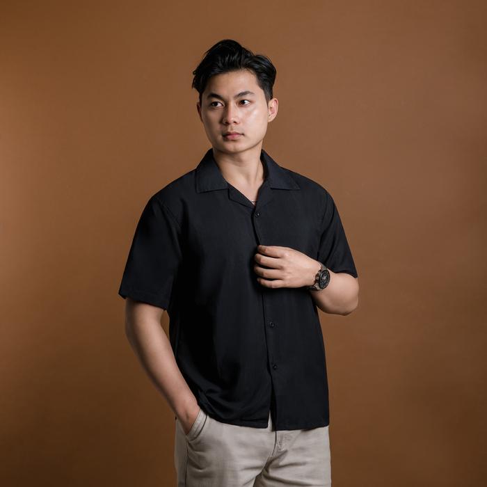 OTSKY KEMEJA PRIA OVERSIZE LOS RAYON - KMJ RAYON PLOS BLK, S