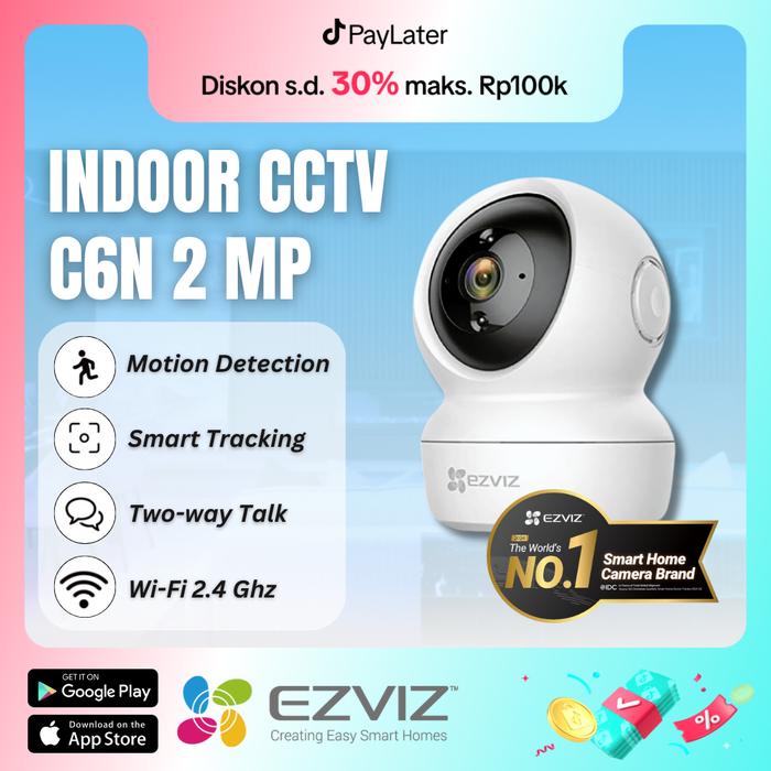 EZVIZ CCTV C6N 2MP SMART IP INDOOR CCTV CAMERA - CCTV EZVIZ PANTAU LEWAT HP - BEBAS ONGKIR RP0 - PUTIH