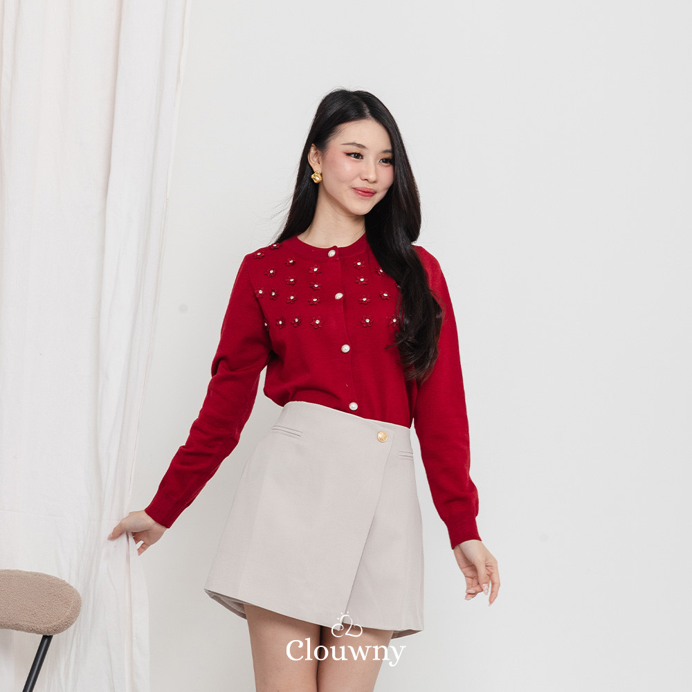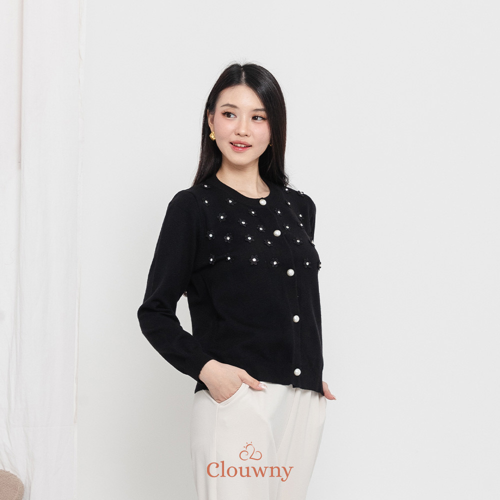 Clouwny Anya Button Knit Cardigan Atasan Lengan Panjang Wanita Classy Simple Outer Korean look