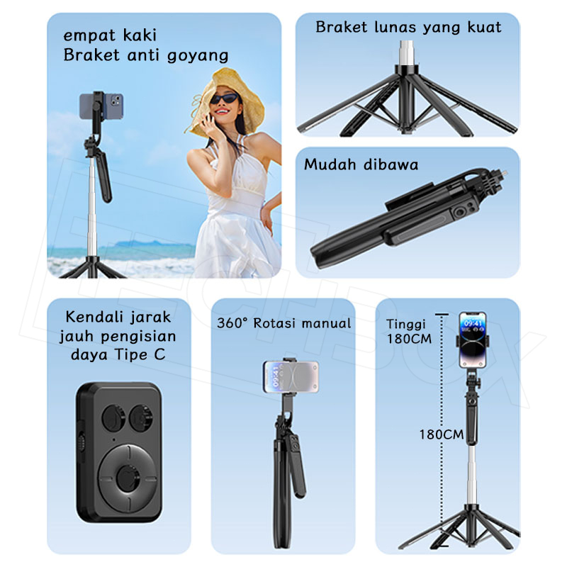 MIXIO A32 Tongsis 2.1M Tripod Double Phone Holder Tablet Stand