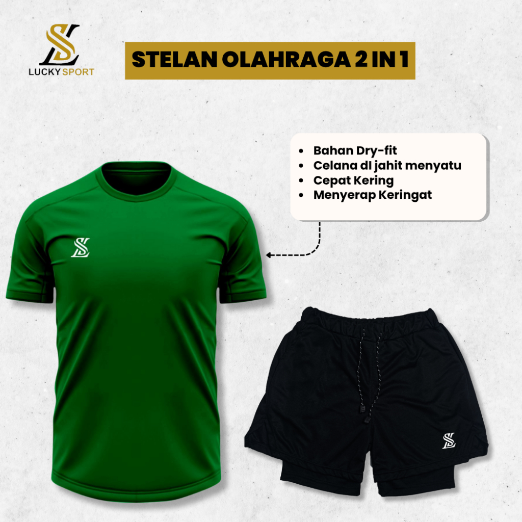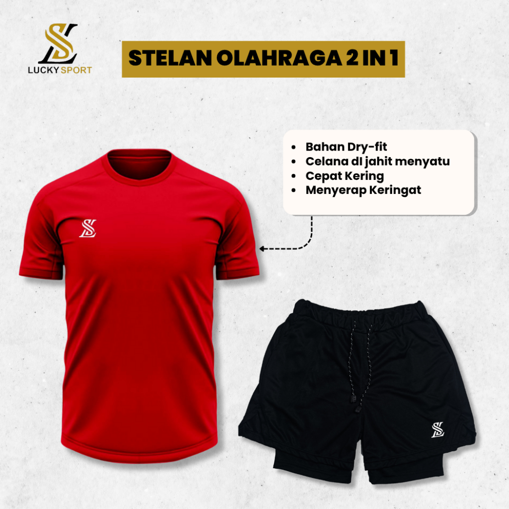 Stelan Jersey dan Celana Pendek Sport Olahraga Lari Running Voli Futsal Gym Badminton Tenis Joging Set 2in1 Pria wanita