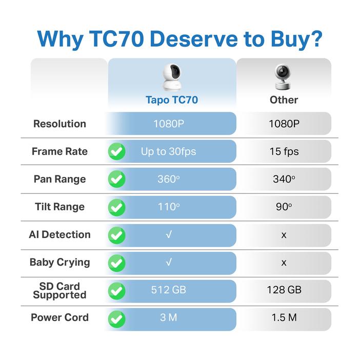 TP-LINK | TA TC70 | 1080P KAMERA CCTV | 360° PTZ IP WIFI CAMERA | HD | INDOOR | SECURITY VIDEO | AI DETECTION | WIRELESS SMART | 30FPS