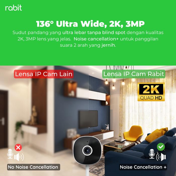 RABIT SMART IP CCTV WIFI CAMERA INDOOR WIDE ANGLE QHD 2K 3MP KAMERA STATIC SUPER LEBAR KOMUNIKASI DUA ARAH DAN 3X OPTICAL ZOOM GARANSI SEUMUR-HIDUP SD CARD & CLOUD STORAGE - JAM - 1 CCTV NO CARD