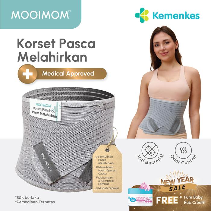 2.0 NEW VERSION MOOIMOM KORSET BAMBOO MEDIS STPARTUM / KORSET PASCA MELAHIRKAN NORMAL CAESAR / FAR INFRARED / ANTI BAKTERI - ABU-ABU, M