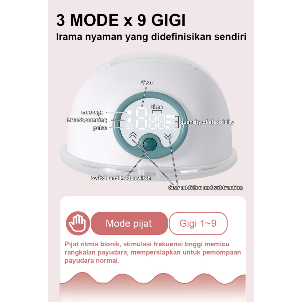 HAPYEE Pompa ASI Elektrik 3 Mode 9 Tingkat Dapat Diisi Ulang Pompa ASI Bebas Tangan