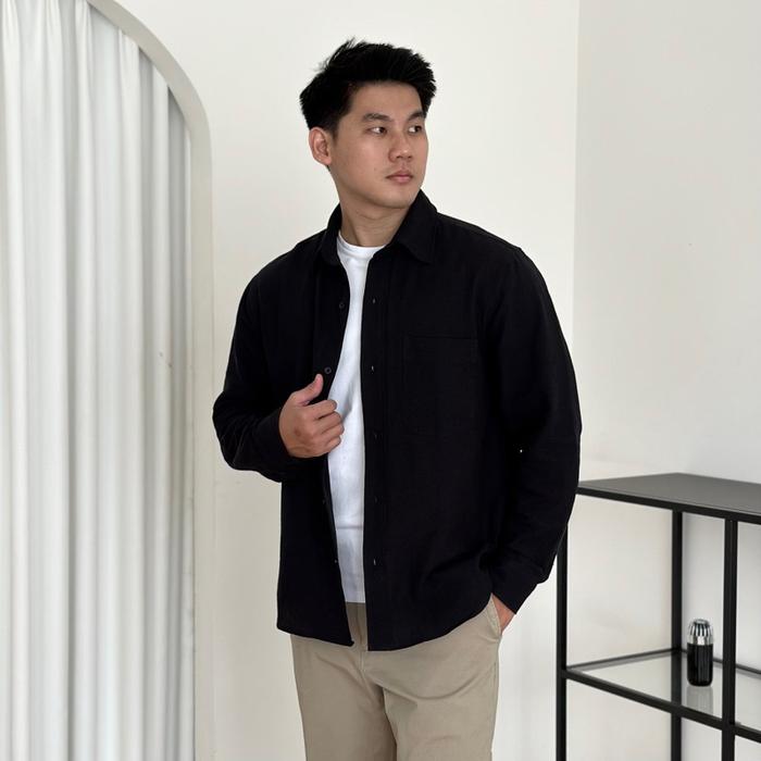 COZYCLUB LONG SLEEVE LINEN SHIRT | KEMEJA PRIA KERAH LENGAN PANJANG BAJU DARK GREY BEIGE - BLACK, S