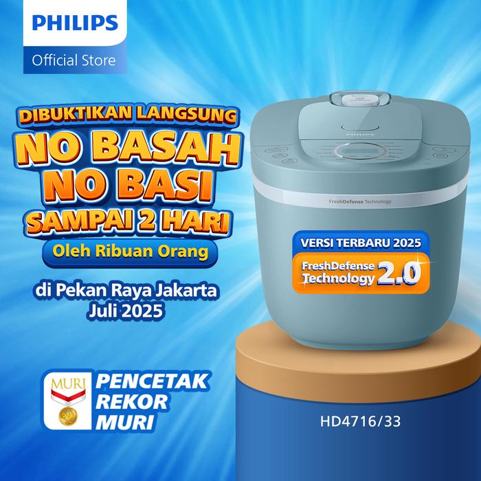 PHILIPS DIGITAL RICE COOKER PENANAK NASI 1.8 L - 3000 DIGITAL SERIES HD4716/33 - BIRU - 16 MENU MASAK - ANTI LENGKET - FRESHDEFENSE TECHNOLOGY - 400 WATT