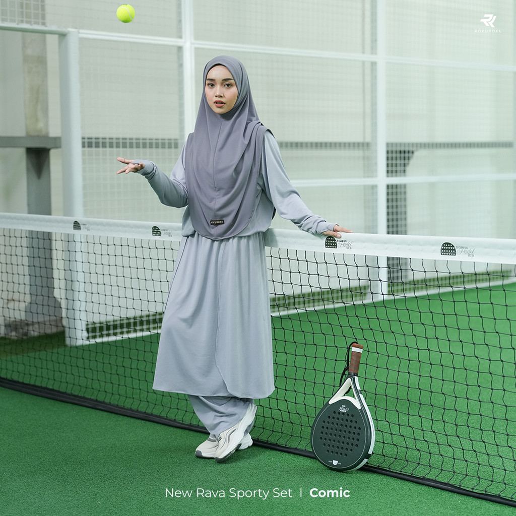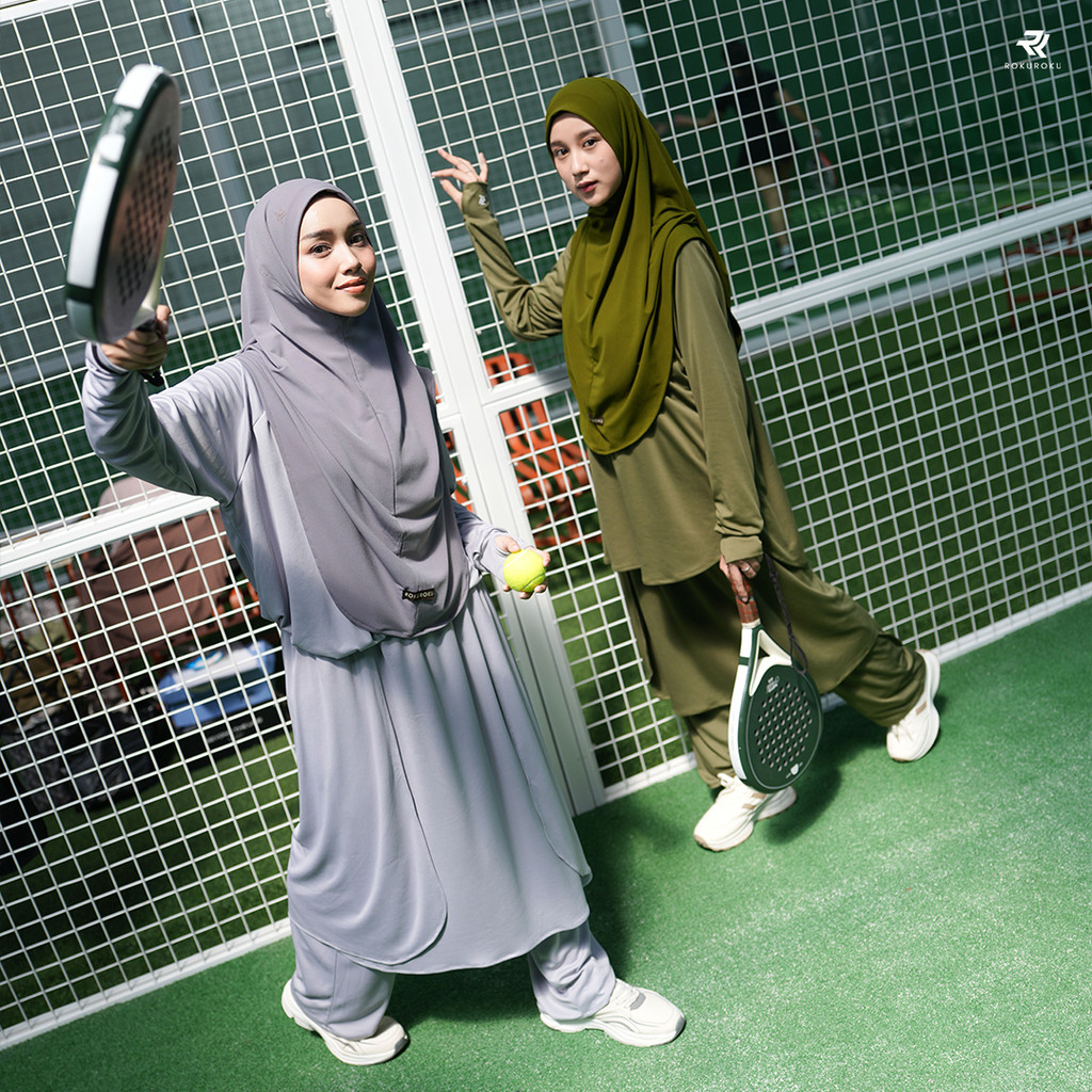 ROKUROKU.ID | Rava Sporty - Setelan Baju Olahraga Wanita Muslim One Set Rok Celana Jersey Premium