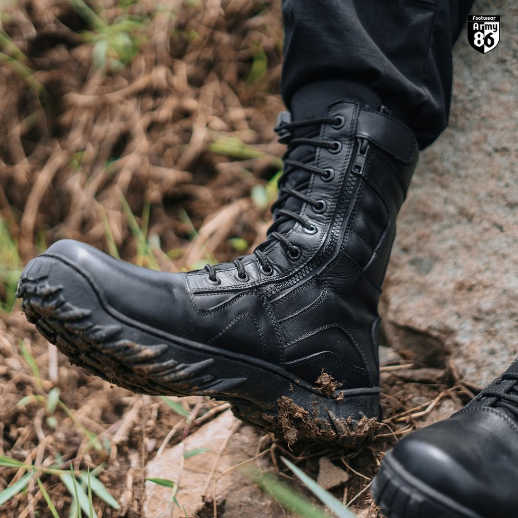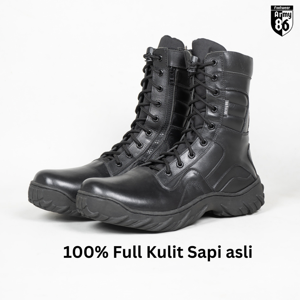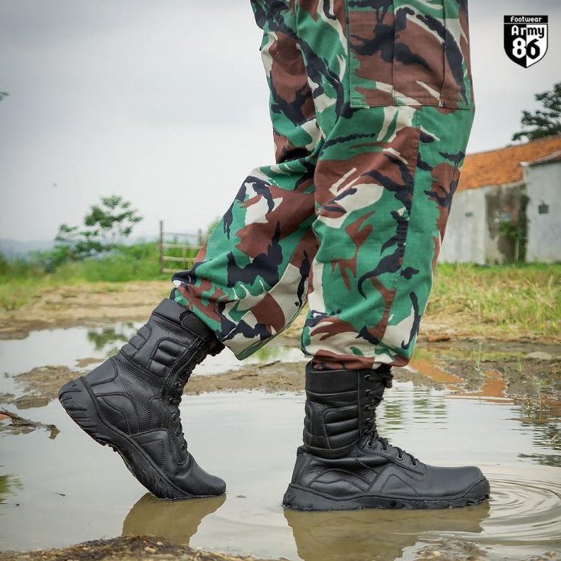 Army86 Sepatu PDL TNI POLRI Satpam Security Hitam Kulit asli model Black hawk komando