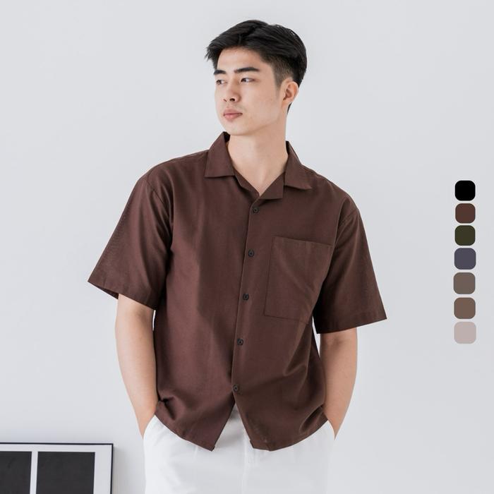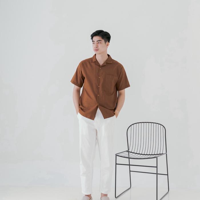 OSAKAA - CUBAN LINEN BOWLING SHIRT | KEMEJA LINEN LENGAN PENDEK COKELAT COFFE - BLACK, M