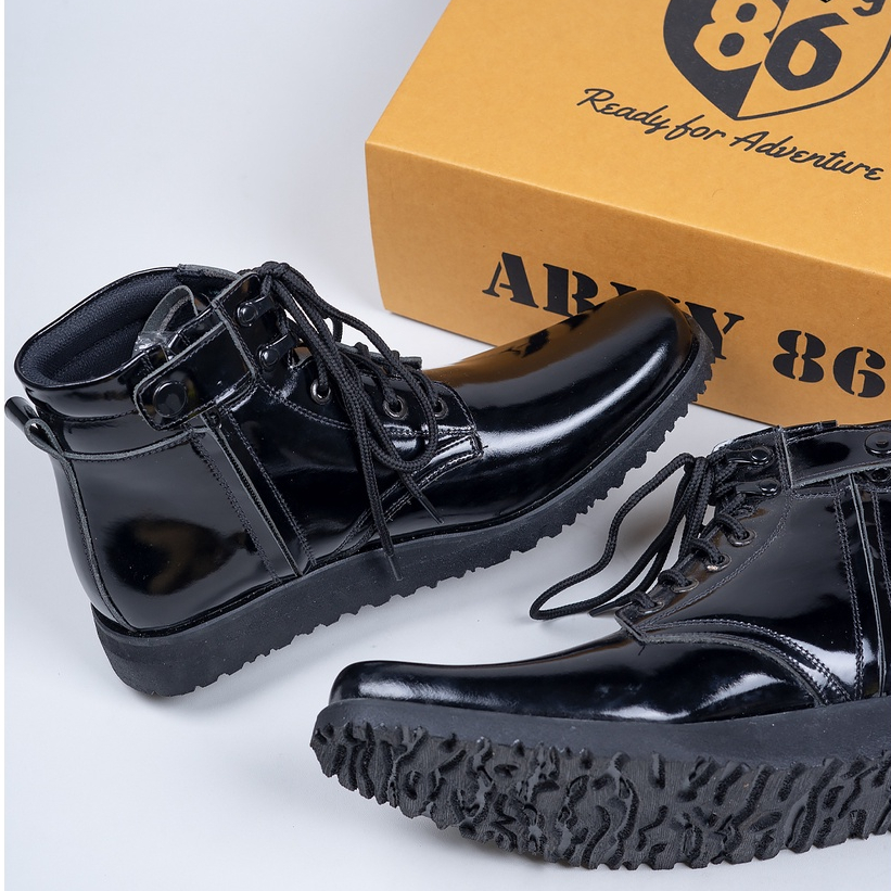Army86 Sepatu PDH TNI POLRI Pria Satpam Kullit asli Tali hidup Model WAVE