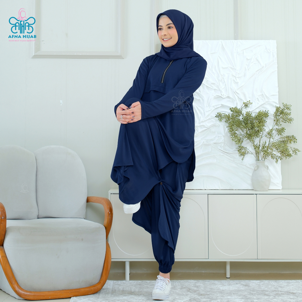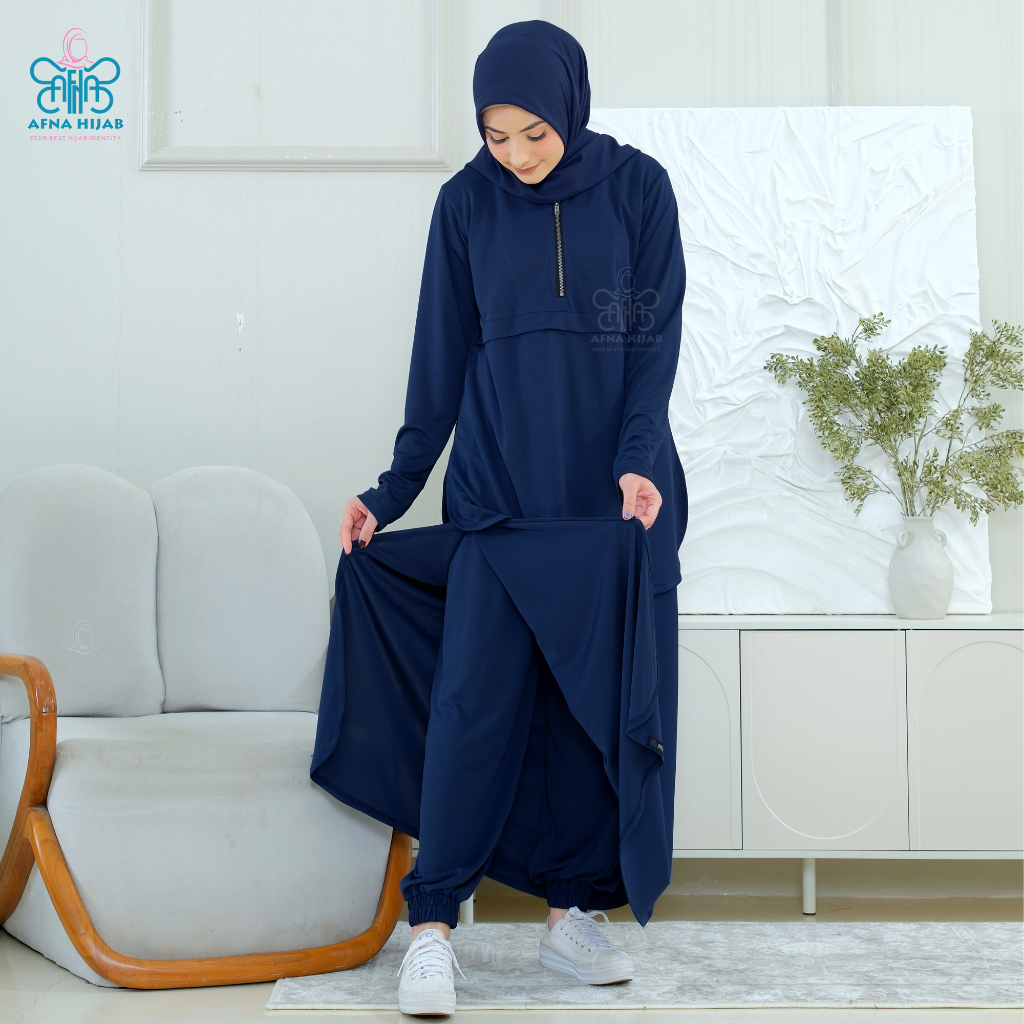 Afna Setelan Olahraga Hilya Nahla Rok Celana Jogger Training Panjang Kaos Atasan Olahraga Wanita Muslimah