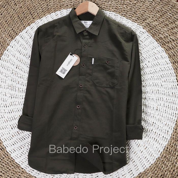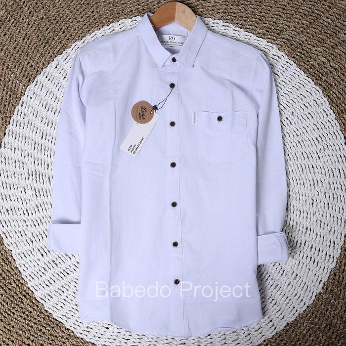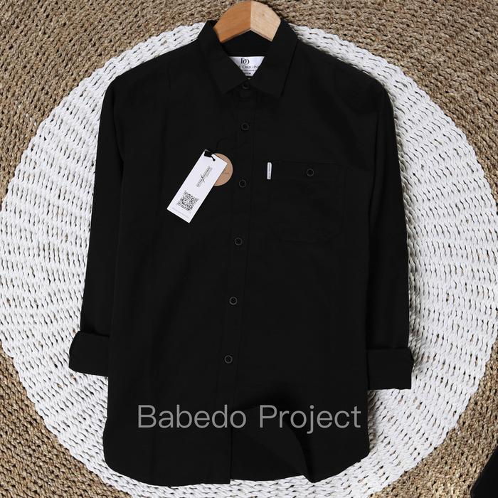 ADA SIZE JUMBO BABEDO KEMEJA LOS PRIA LENGAN PANJANG SLIM MATT KATUN SIGARET PREMIUM LEMBUT NYAMAN CASUAL COWOK SLIM FIT DISTRO BASIC HITAM FORMAL KERJA KEMEJA LENGAN HEM KERAH PUTIH - HITAM, M