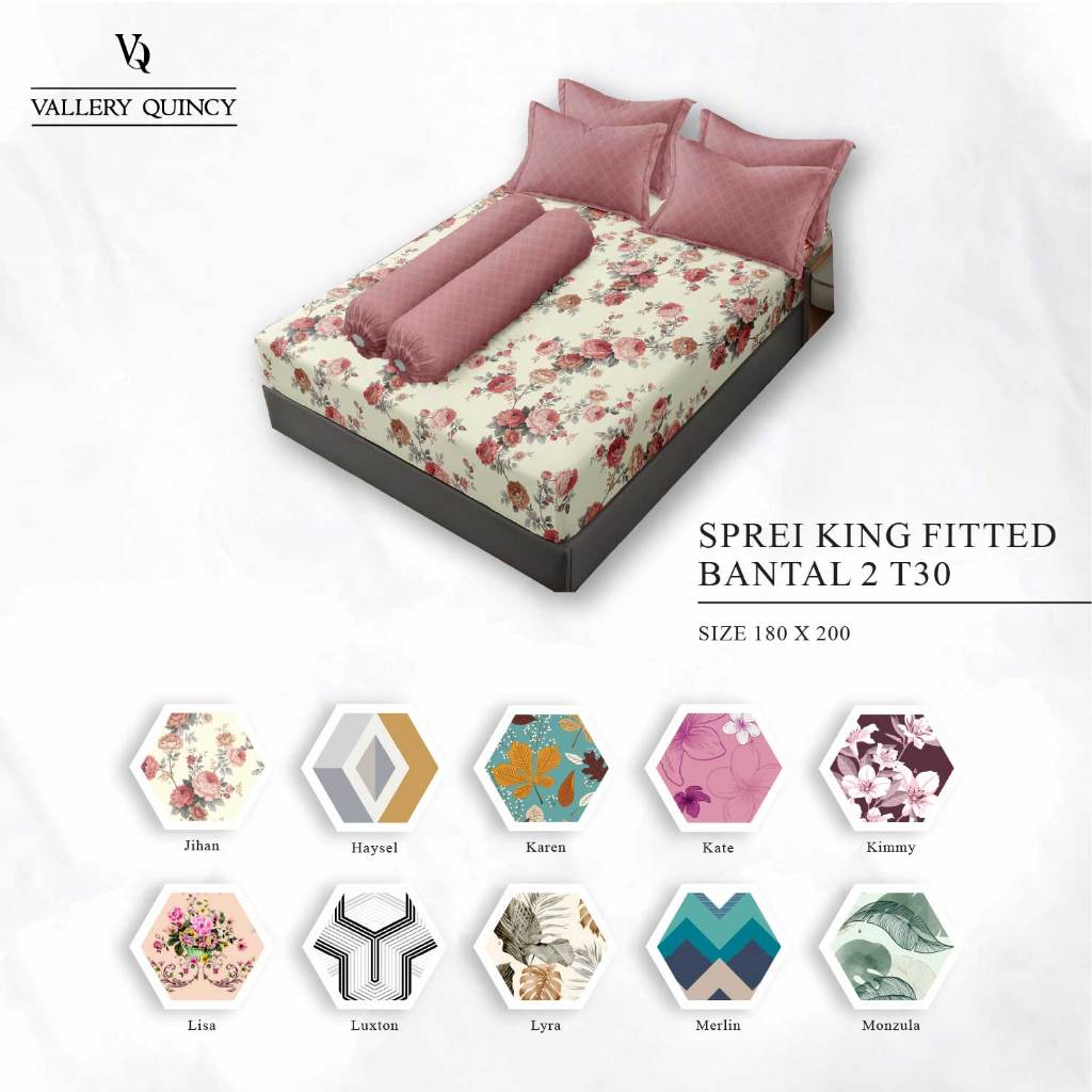 Vallery Quincy - Sprei King 180x200 Tinggi 30 Bantal 2 "Live"