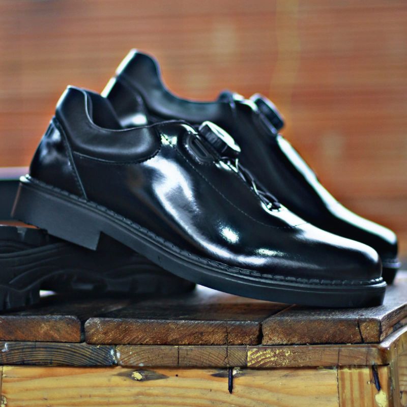 Sepatu Pdh Pria Tni Polri sekurity Bahan Kulit Asli Tali Baja mengkilap Glosy merk Brotrher