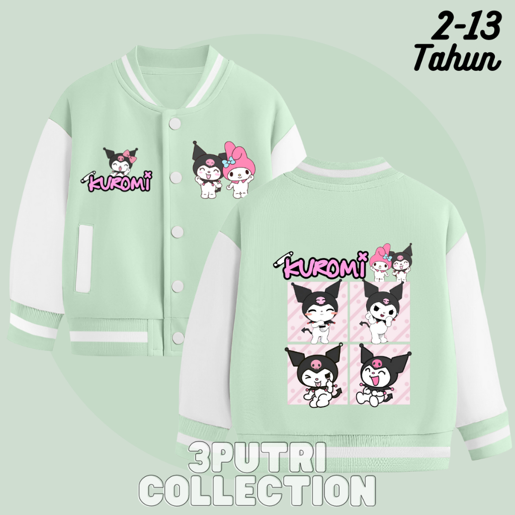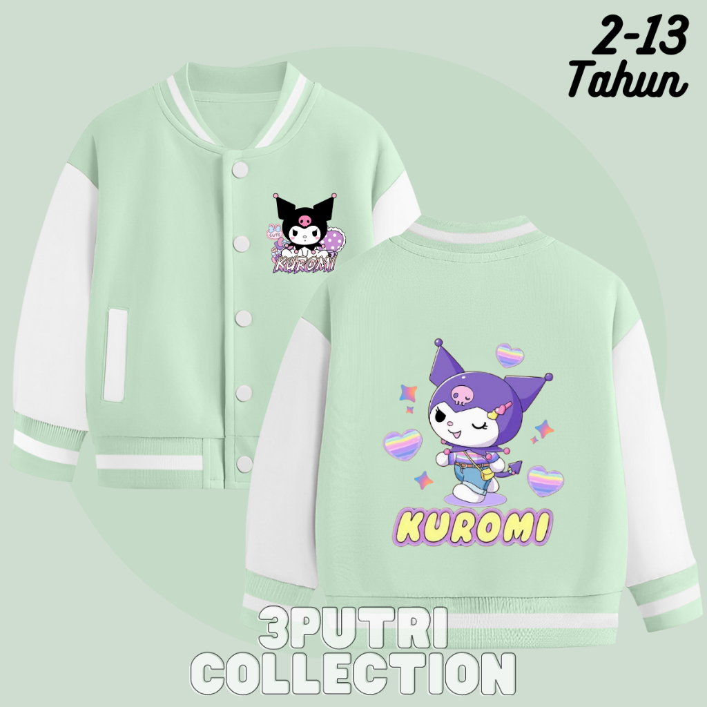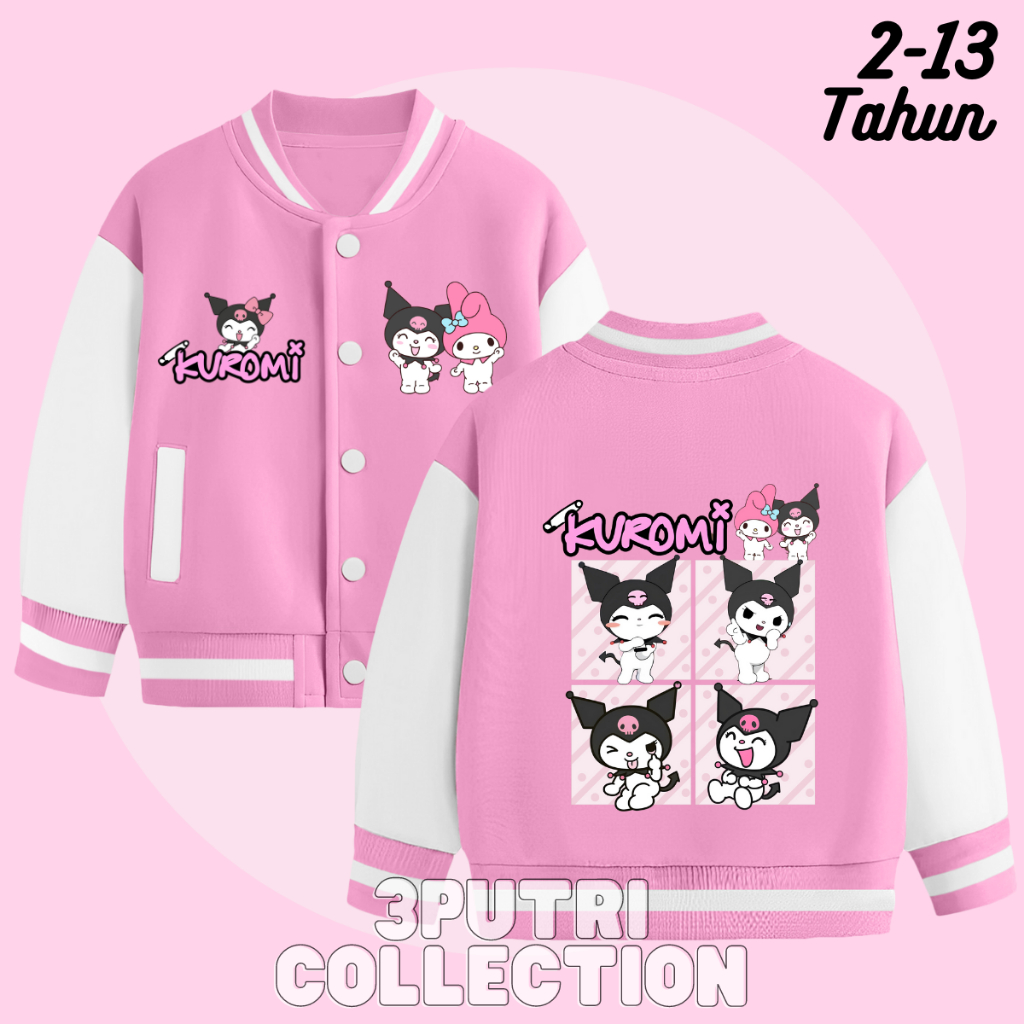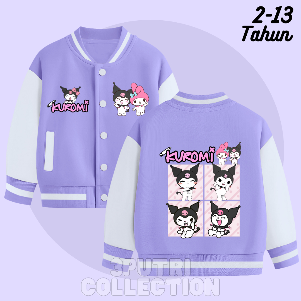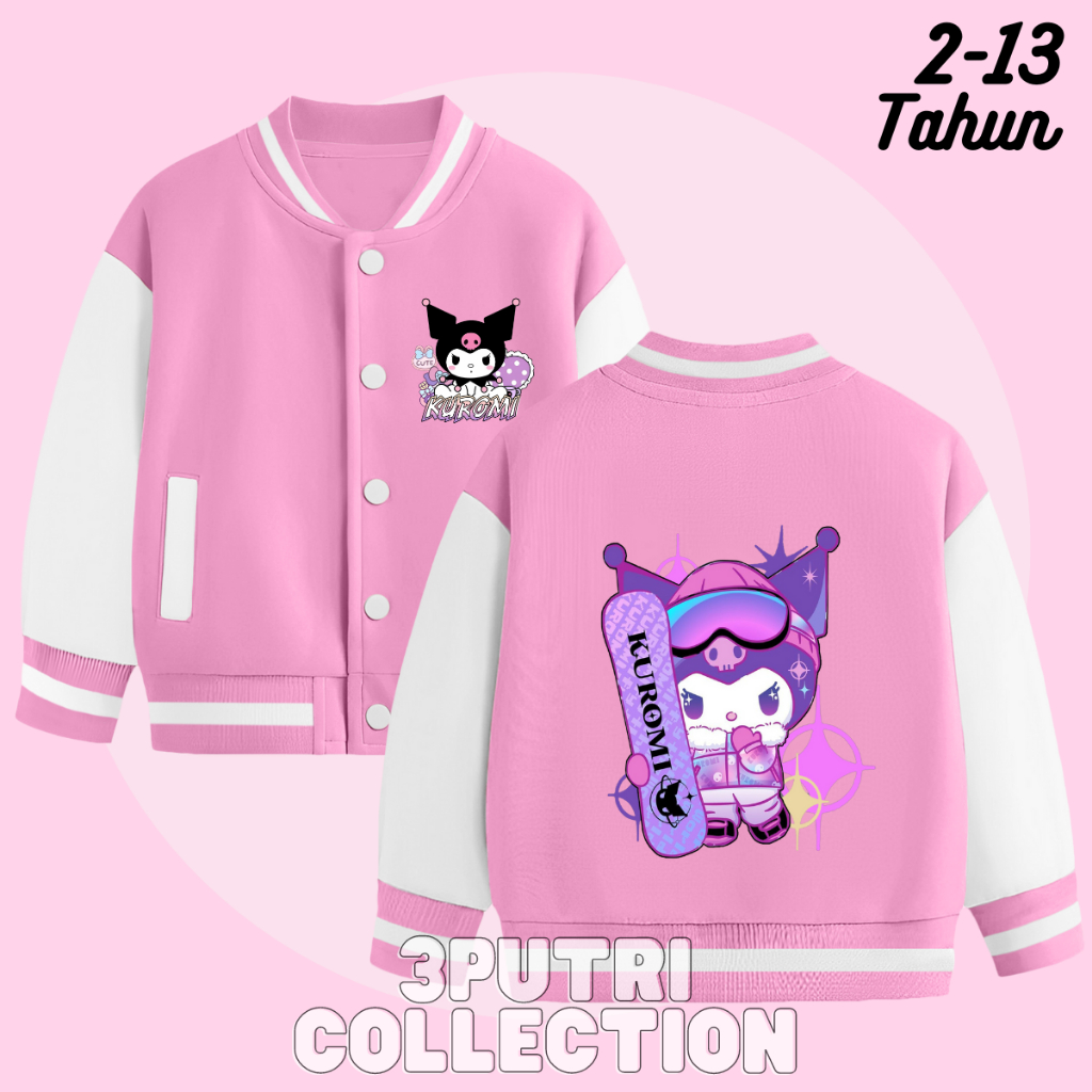 Jaket Baseball Kuromi Anak Perempuan Usia 2-13 Tahun Jacket Varsity Anak Cewek Lucu Terbaru Karakter Sanrio