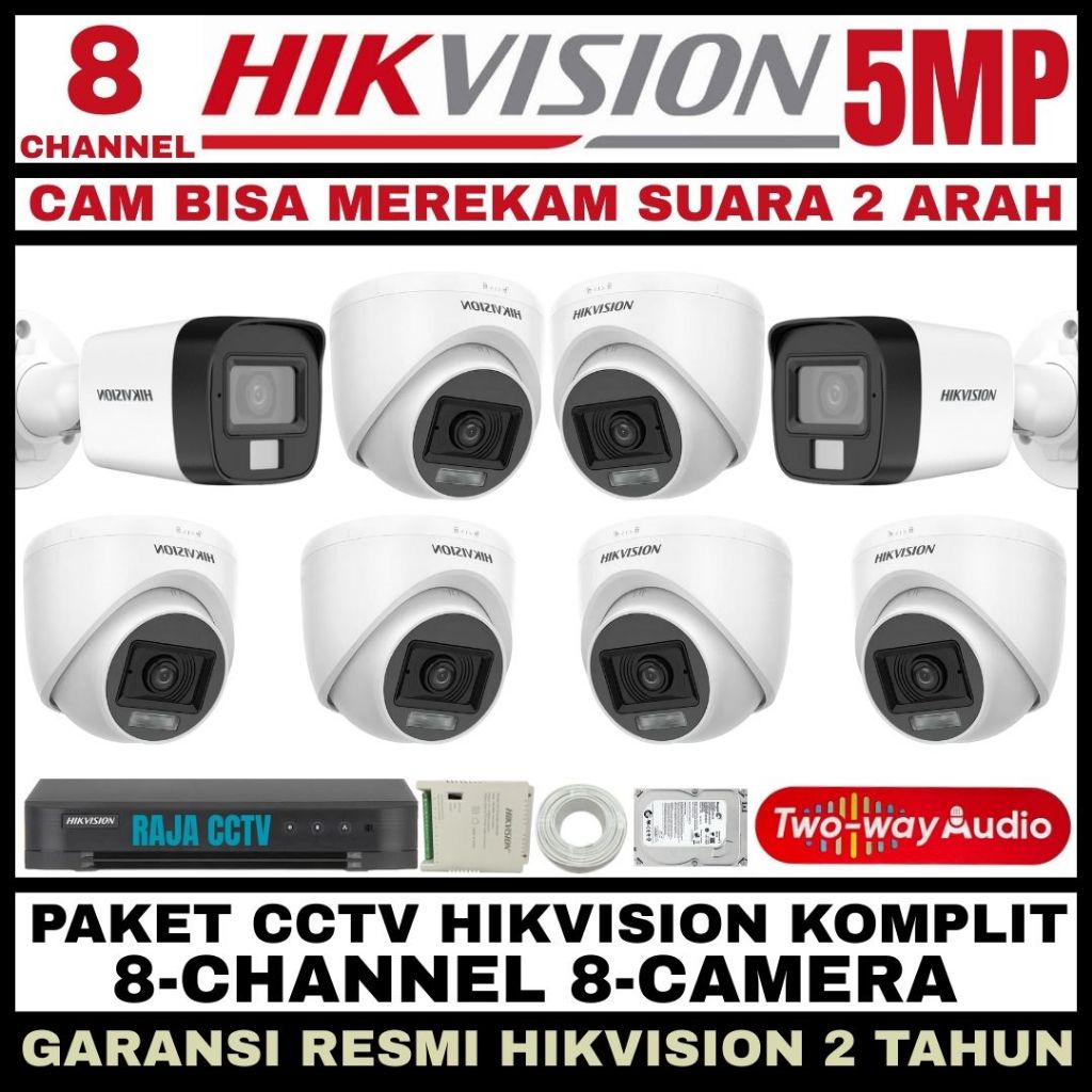 paket cctv hikvision 5mp 8 channel 8 camera two way audio 2 arah turbo hd kamera cctv