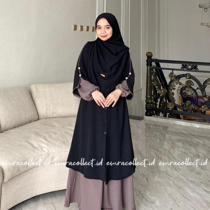 READY SETELAN ROK ONE SET ROK TUNIK SYAR’I FULL KANCING SET ROK TUNIK MALAYA SET PASHMINA OVAL WANITA GAMIS - SAMIRA HITAM, SET HIJAB