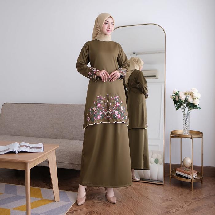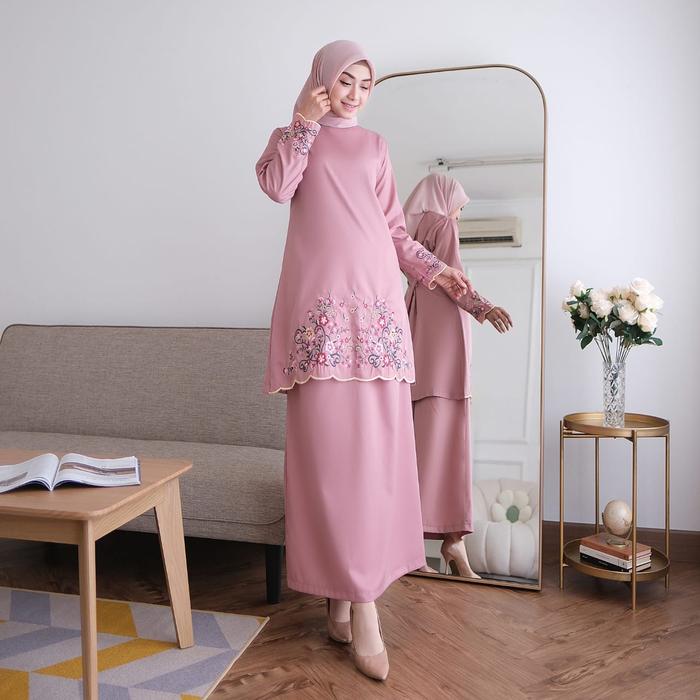 ONE SET KINARA KURUNG MELAYU KATUN TOYOBO BORDIR BUNGA FASHION MUSLIM WANITA TERBARU TERLARIS SETELAN DEWASA BAJU PANJANG IBU - MARON, M