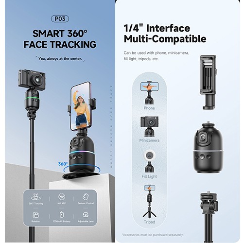Takara FACECAM 55 Smart Ai Auto Face Tracking Gimbal Stabilizer for Camera & Smartphone