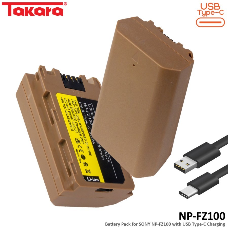 Takara NP-FZ100 / NPFZ100 Battery Baterai Batere with USB Type-C for Sony Camera